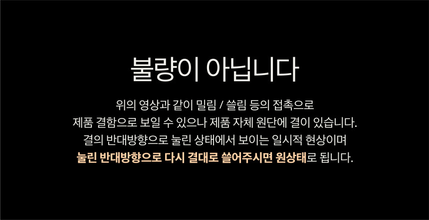 - 제품 특성상 단순 변심, 부주의에 의한 제품 손상 및 파손, 사용 및 개봉한 경우 교환/반품이 불가합니다.