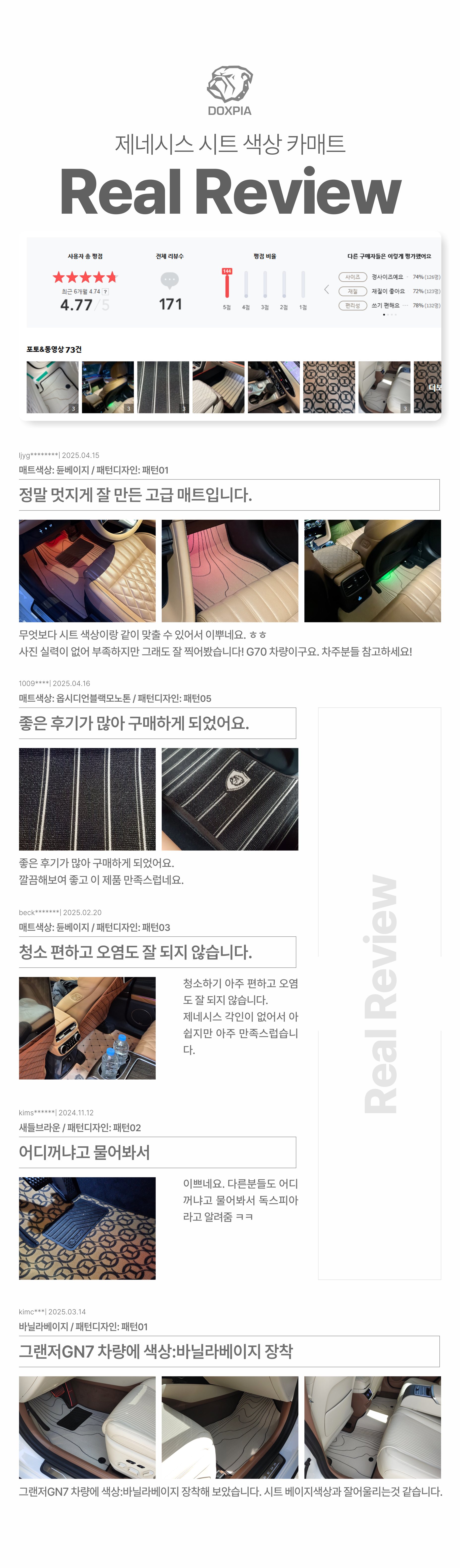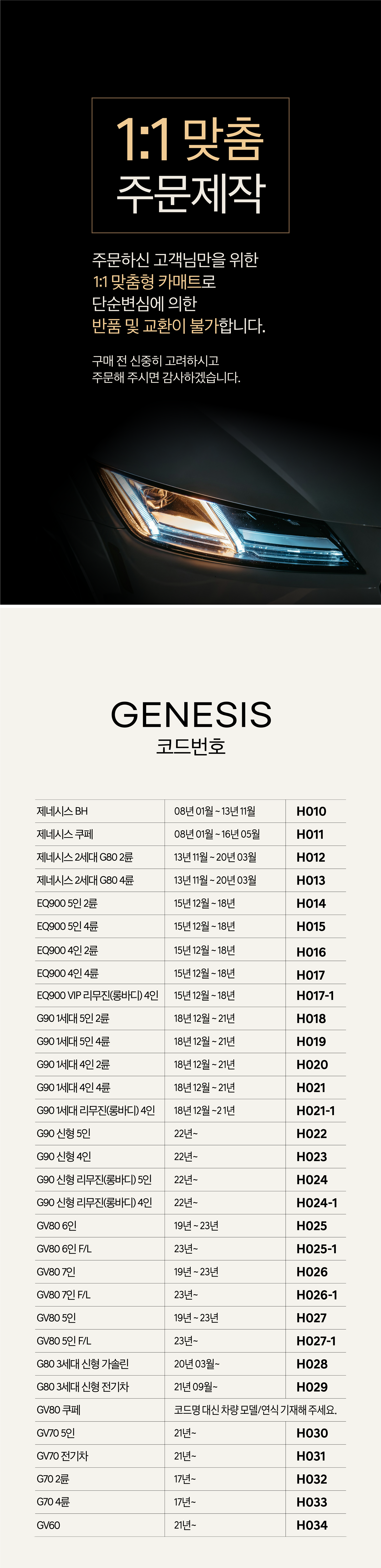 승용/SUV 제네시스 인기 시트색상 패턴카매트