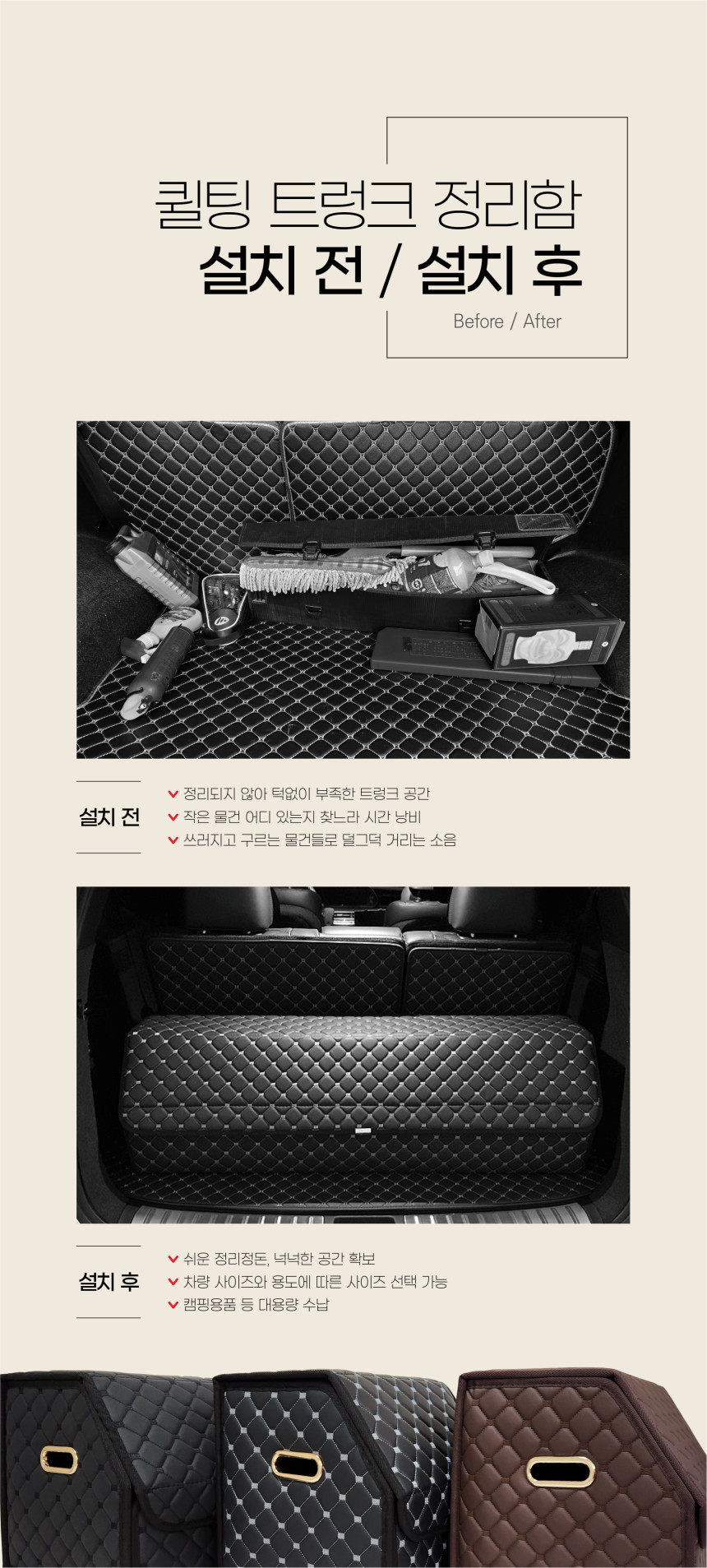 가죽 퀼팅 트렁크정리함(M) 자체제작